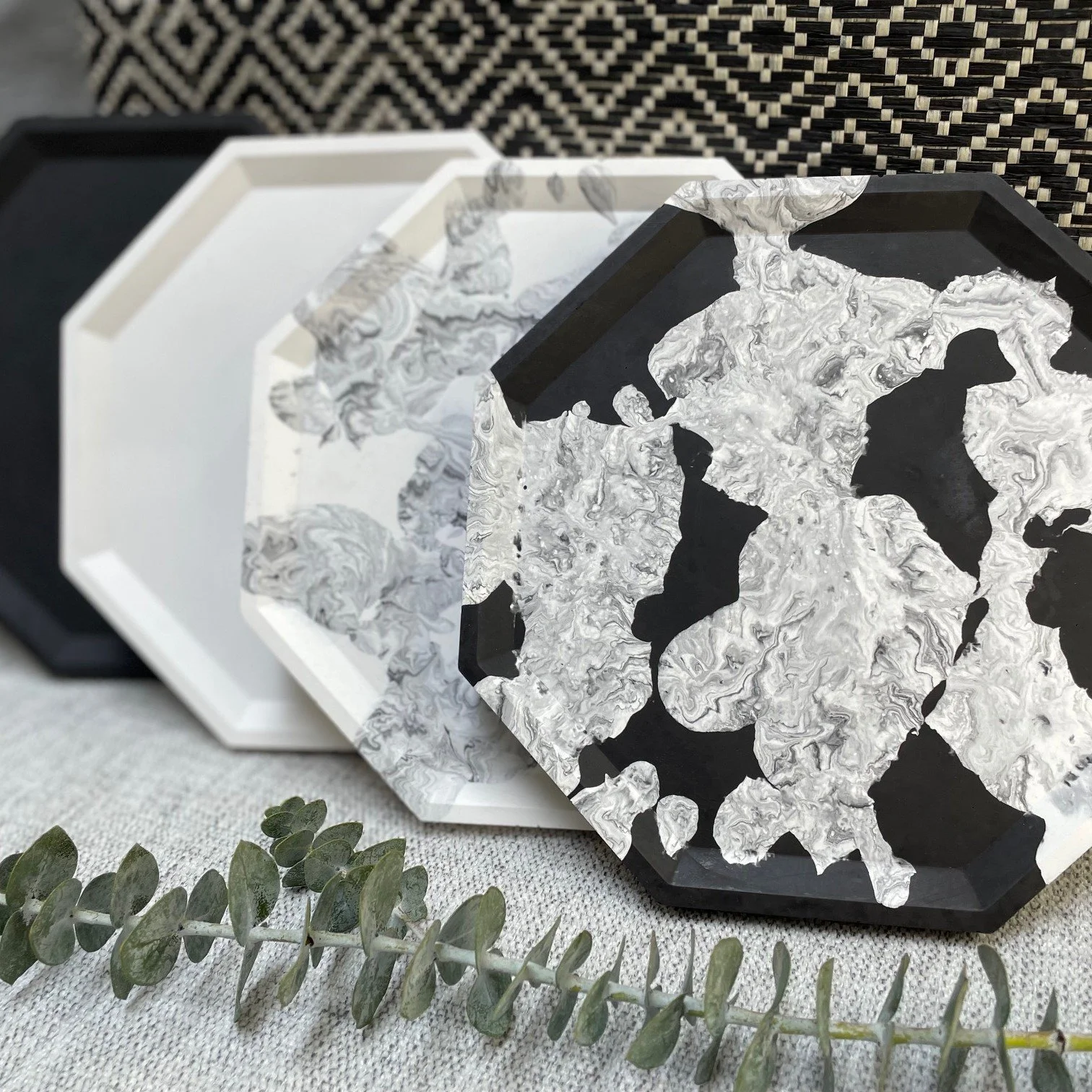 the versatility of kimiya’s splash-proof coasters are bountiful : from sacred selections to everyday items, + anything your heart can en.vision /// every offering is distinct in its features within this monochromatic, eco-based collection of circle, square, + hexagon coasters in ivory, charcoal, marbled ivory, + marbled charcoal